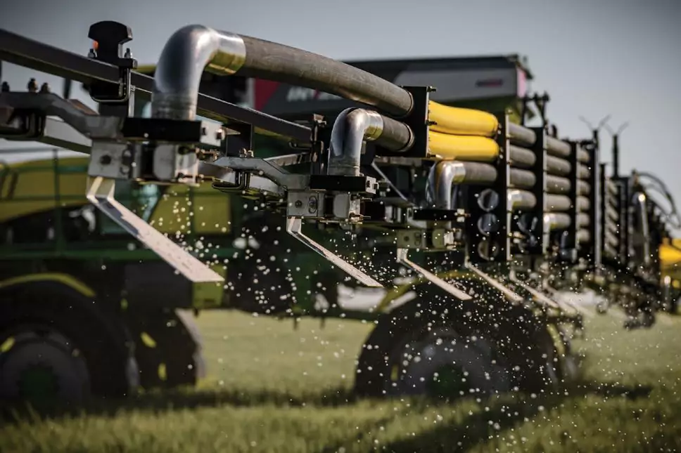 El equipo cuenta con 6 dosificadores a engranajes. Esto permite dividir los 36 metros de ancho de labor en 6 secciones. Por el diseño de los dosificadores, la tolva no necesita estar presurizada.